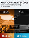 - Keep Car Cool: Engineered with a silver coating to reflect heat, reducing heat buildup by up to 40°F and blocking 99% of harmful UV rays. Keep your Sprinter cooler and prevents leather seats from cracking and fading