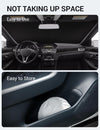 - Easy to Use and Store: Unlike other products on the market, We use a Lightweight collapsible car window sun shade design. The windscreen sunshade can be easily popped up and folded in seconds for daily use. You can easily tuck the car sun visor protector into your door pocket