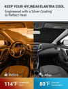 - Keep Car Cool: Engineered with a silver coating to reflect heat, reducing heat buildup by up to 40°F and blocking 99% of harmful UV rays. Keep your Elantra cooler and prevents leather seats from cracking and fading