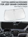 - DESIGNED IN USA!!! Custom Design: The front windshield shade has been custom cut specifically for Grand Cherokee. Precise fit design and Reinforced steel rings make a precise and secure fit to the window, no need to use suction cups to hold it in place. It won't sag or collapse like other car heat shields. Fits for 2014-2025 Grand Cherokee