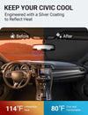- Certified Sustainable. DESIGNED IN USA!!! Custom Design: The front windshield shade has been custom cut specifically for Honda Civic. Precise fit design and Reinforced steel rings make a precise and secure fit to the window, no need to use suction cups to hold it in place. It won't sag or collapse like other car heat shields. Fits for Honda Civic 2021 2020 2019 2018 2017 2016.