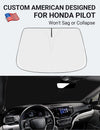 - DESIGNED IN USA!!! Custom Design: The front windshield shade has been custom cut specifically for Pilot. Precise fit design and Reinforced steel rings make a precise and secure fit to the window, no need to use suction cups to hold it in place. It won't sag or collapse like other car heat shields. Fits for 2016-2025 2026 Pilot