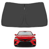 - Certified Sustainable. DESIGNED IN USA!!! Custom Design: The front windshield shade has been custom cut specifically for Toyota Camry. Precise fit design and Reinforced steel rings make a precise and secure fit to the window, no need to use suction cups to hold it in place. It won't sag or collapse like other car heat shields. Fits for Toyota Camry 2025 2024 2023 2022 2021 2020 2019 2018.