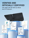 - Reinforced 10-Rib Umbrella Skeletons: Engineered with a heavy-duty 10-rib umbrella skeleton, this windshield shade has been tested through thousands of open-close cycles for long-lasting durability. It resists bending, fatigue, and sagging, even under intense summer heat. The strong internal tension keeps the windshield sunshade umbrella in place,no suction cups, no residue,just clean, secure protection.