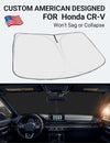 - Certified Sustainable. DESIGNED IN USA!!! Custom Design: The front windshield shade has been custom cut specifically for Honda CRV. Precise fit design and Reinforced steel rings make a precise and secure fit to the window, no need to use suction cups to hold it in place. It won't sag or collapse like other car heat shields. Fits for Honda CRV 2026 2025 2024 2023.